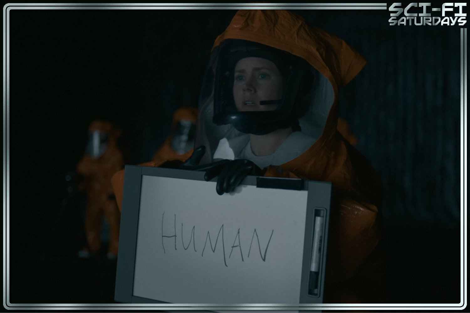 Louise is frustrated, but returns again with a whiteboard as she attempts to communicate with writing. The group continues to follow protocol and dress in bulky hazmat suits, carrying a small bird in a cage to detect atmospheric changes, even though their devices say the air is breathable and no radiation exists. One of the heptapods blasts an inky circle onto the glass divider, but it’s unlike anything Louise has ever seen. The Colonel wants things sped up for his bosses, but Louise knows that mistakes or assumptions can lead to confusion and worse as she shares a story about the origins of the word ‘kangaroo’ with Aboriginal Australians. Louise explains why she needs to start with “grade-school words,” helping her understand their language.