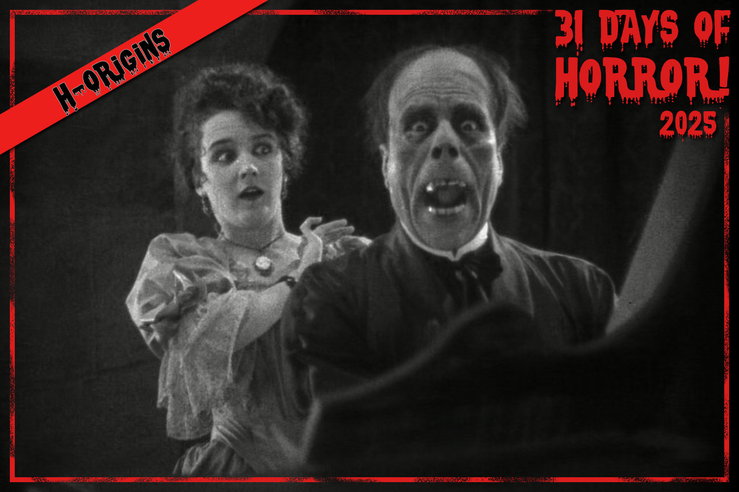 The Phantom of the Opera is a return to the roots of the horror film as it becomes another entry in the “H-Origins” series on 31 Days of Horror. This original version of the film celebrates its 100th Anniversary this year, making it one of a small handful of horror films that have survived the last century. This includes Nosferatu, The Hunchback of Notre Dame, and The Hands of Orlac, all of which have been featured in this article series in the last three years. So much of this film has inspired other filmmakers’ imaginations, from the atmosphere of the sets to the amazing makeup transformations used by Chaney, not just in remakes of the story but in all aspects of horror.