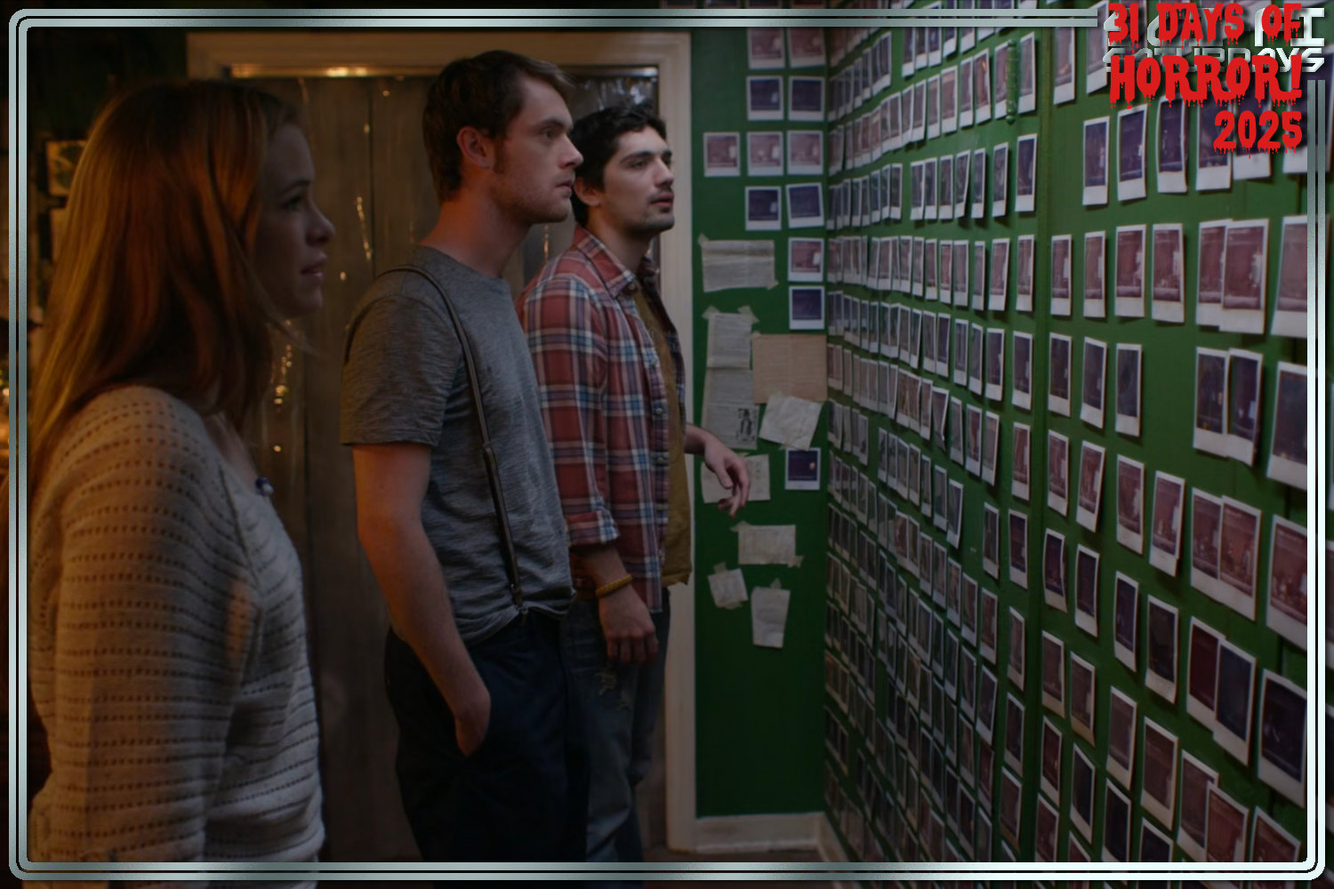 Finn (Matt O’Leary), a painter with a creative block who is also the superintendent of the apartment complex, lives with his girlfriend Callie (Danielle Panabaker), who has been feeling distant from Finn lately, and their friend Jasper (George Finn) in a ground-floor apartment in Denver. When the landlord calls, indicating that Mr. Bezzerides (John Rhys-Davies, who appears in photos only) is late with the rent, Callie checks on his apartment to find him missing. Later, Finn and Jasper join her to discover hundreds of Polaroid photos showing their apartment window and a giant machine bolted to the floor, which spits out a new photo at 8 pm. The photos on the wall depict all sorts of scenes with the characters, and are seemingly voyeuristic, until they look at the new photo, which depicts something that hasn’t happened yet.